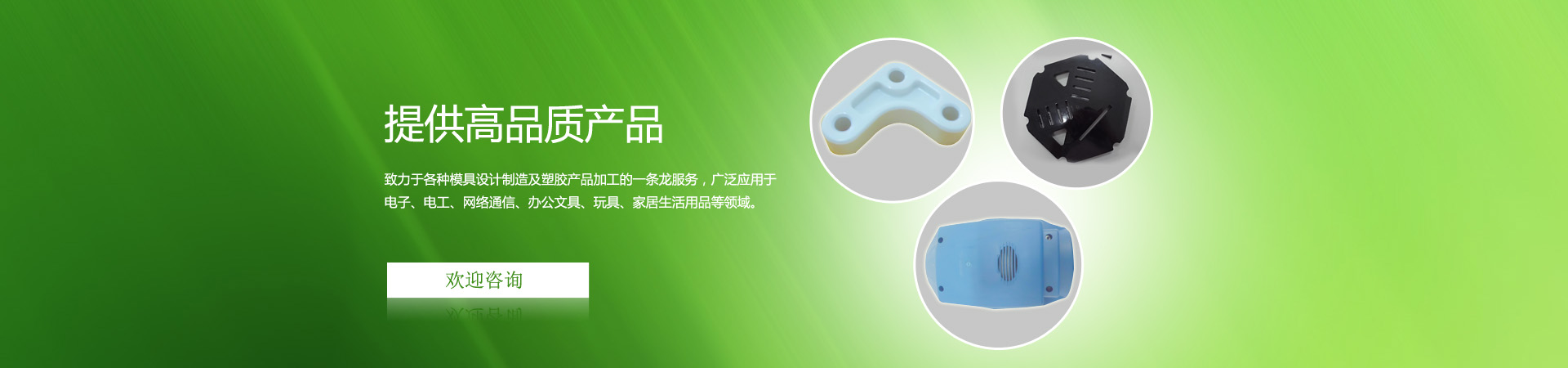本厂自建立以来,一直致力于各种模具设计制造及塑胶产品加工的一条龙服务,年生产模具200多套,广泛应用于电子、电工、网络通信、办公文具、玩具、家居生活用品等领域。